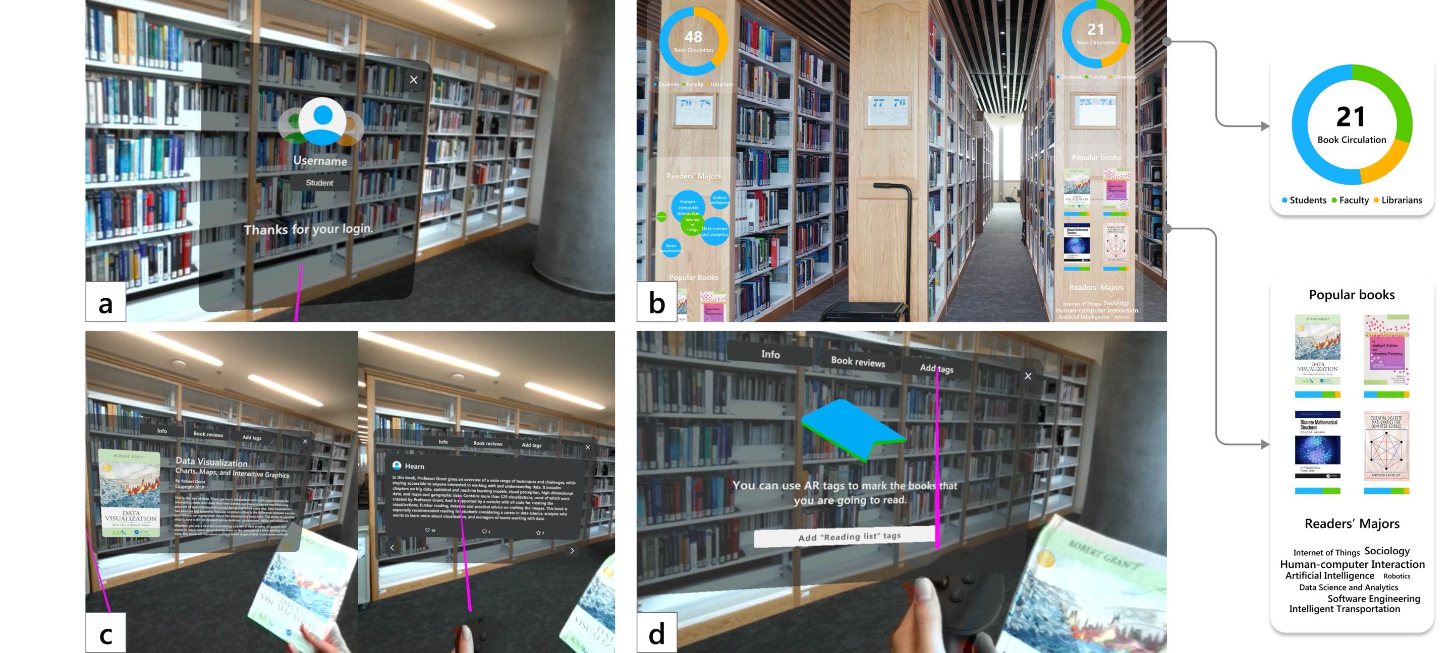 ![]() | Augmented Library: Toward Enriching Physical Library Experience Using HMD-Based Augmented RealityQianjie Wei, Jingling Zhang, Pengqi Wang, Xiaofu Jin, Mingming Fan* The 17th International Symposium on Visual Information Communication and Interaction (VINCI 2024), Hsinchu, Taiwan, December 2024. Despite the rise of digital libraries and online reading platforms, physical libraries still offer unique benefits for education and community engagement. However, due to the convenience of digital resources, physical library visits, especially by college students, have declined. This underscores the need to better engage these users. Augmented Reality (AR) could potentially bridge the gap between the physical and digital worlds. In this paper, we present Augmented Library, an HMD-based AR system designed to revitalize the physical library experience. By creating interactive features that enhance book discovery, encourage community engagement, and cater to diverse user needs, Augmented Library combines digital convenience with physical libraries’ rich experiences. This paper discusses the development of the system and preliminary user feedback on its impact on student engagement in physical libraries. |
